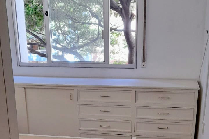 Ubicado en el décimo piso, el acceso se realiza a través de una espaciosa cocina equipada con placares aéreos y bajo mesada, seguida de un recibidor que conecta con el luminoso salón comedor mediante una puerta corrediza, otorgándole mayor privacidad. Desde la cocina, se accede a una terraza-lavadero.