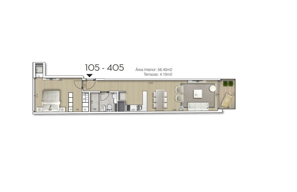 105 | 1 DORM | 56,4 | 4,1 | 60,5 | 156.580 |