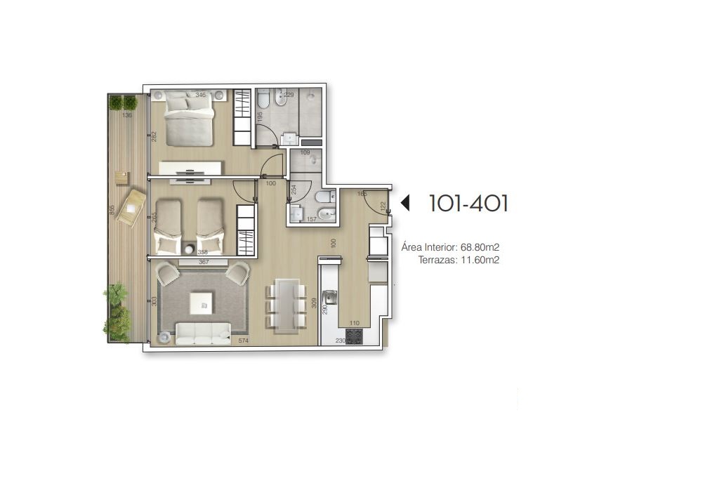 101 | 2 DORM | 68,8 | 11,6 | 80,4 | 235.400 |