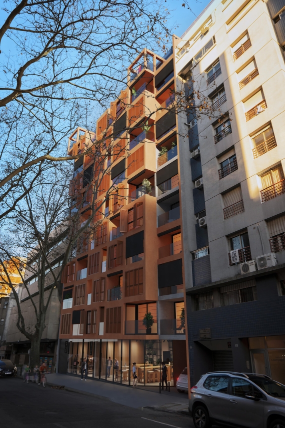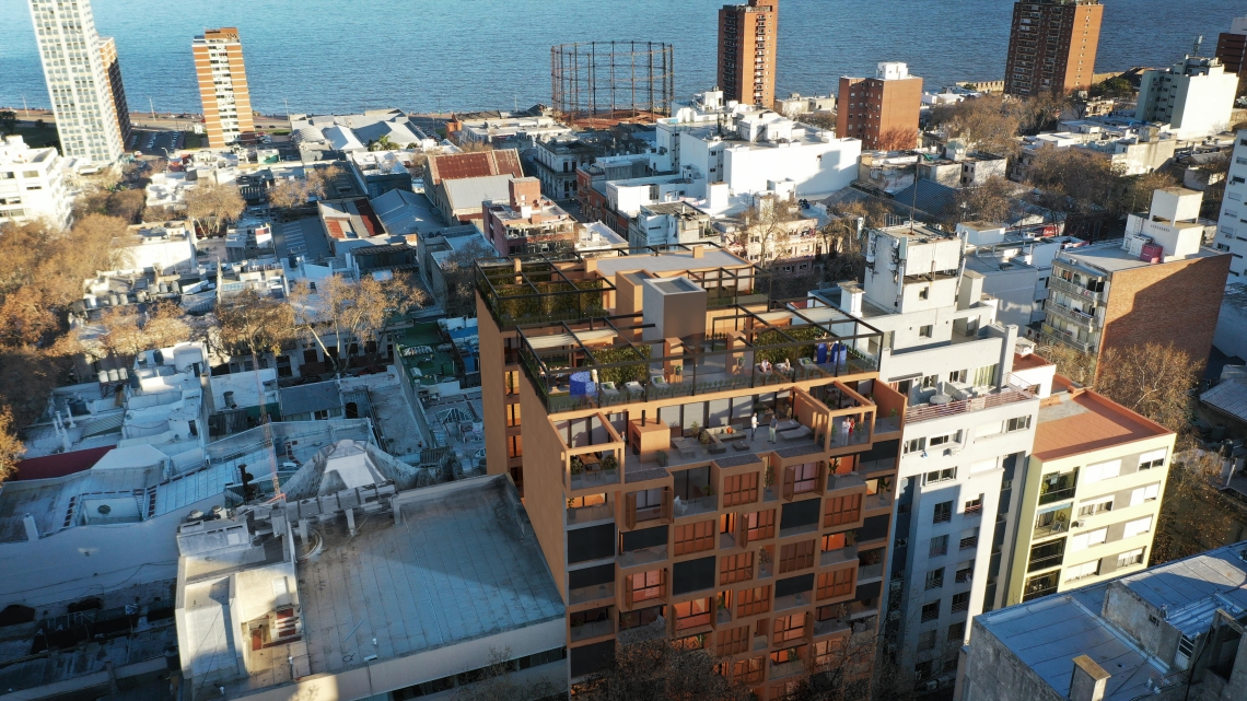 01 Sync Montevideo es un emprendimiento de viviendas multifamiliar + locales comerciales en PB.