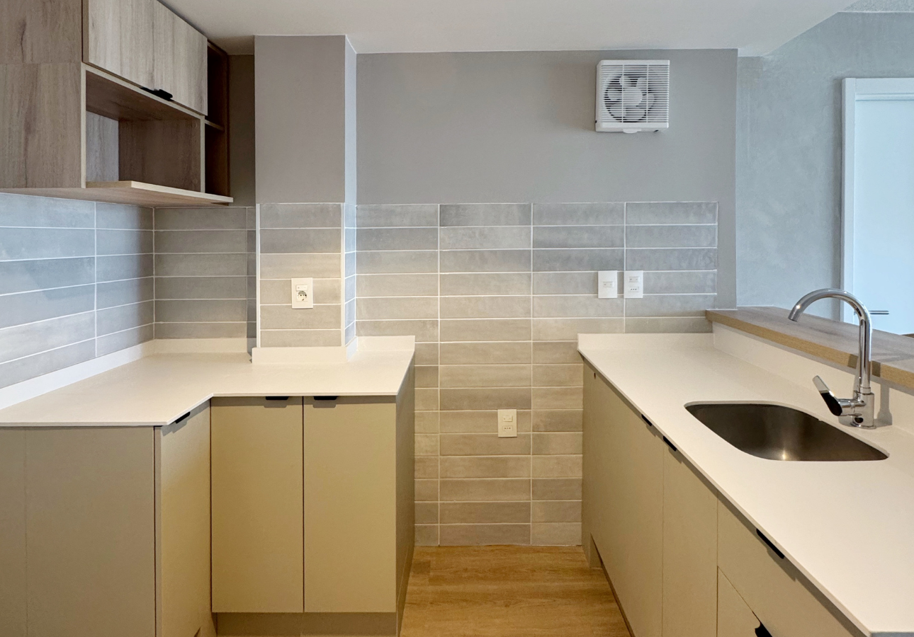 - Diseño moderno con excelentes terminaciones: pisos vinílicos símil madera, mesadas de quarzo Quarella, griferías FV, aberturas de aluminio y cortinas motorizadas