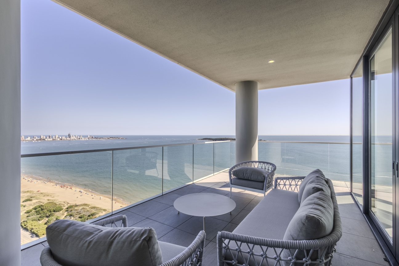 Única en el balneario, con sus 27 pisos distribuidos en apartamentos desde 163 m², de 2 a 4 dormitorios en suite, toilette y dependencia de servicio. Coronando con 6 penthouse de 4 dormitorios en suite, toilette, dependencia de servicio y barbacoa.