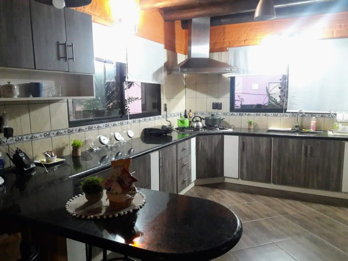 Tiene en su planta baja un amplio living con estufa a leña muy bien iluminado, cocina comedor grande con otra estufa a leña y salida directa al fondo.