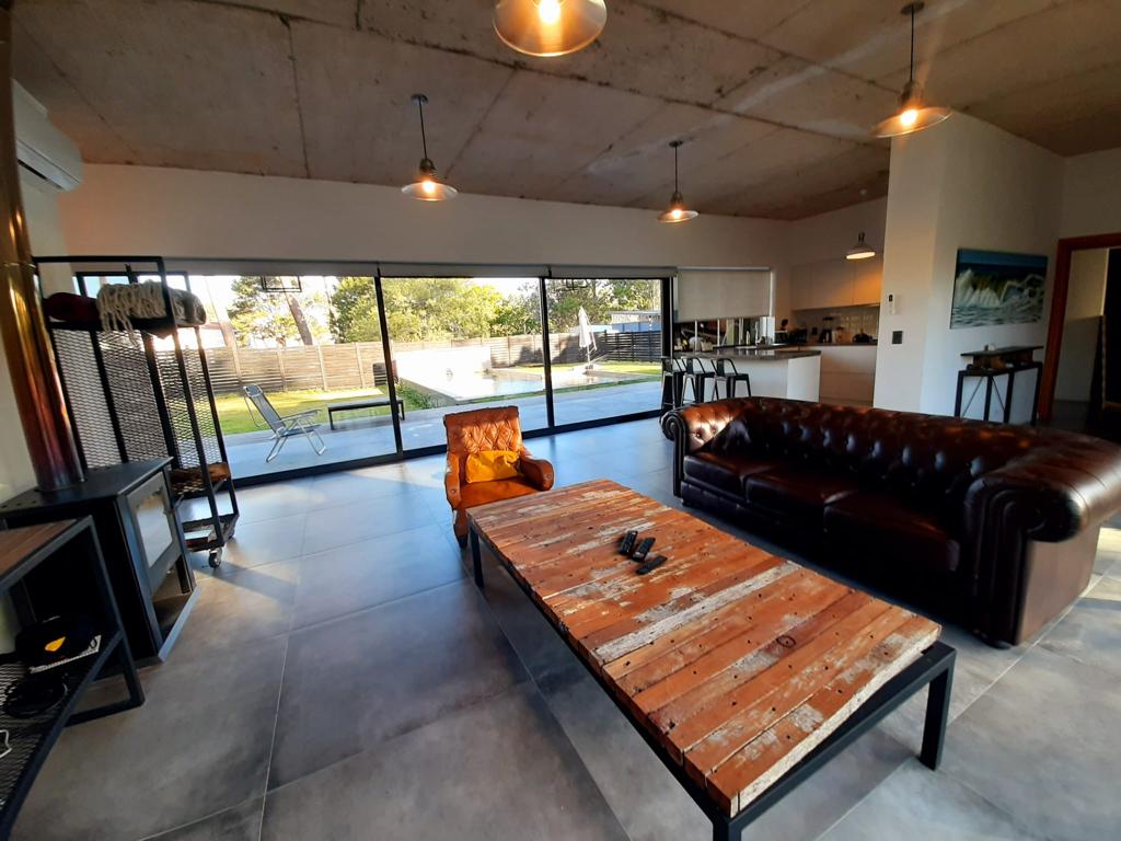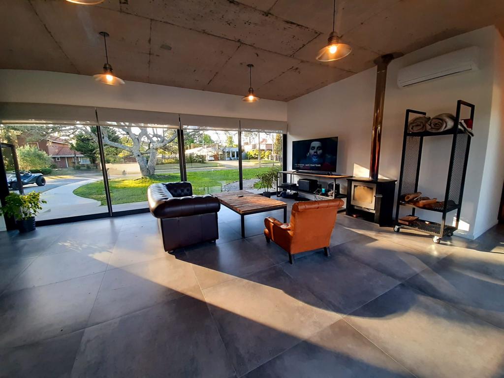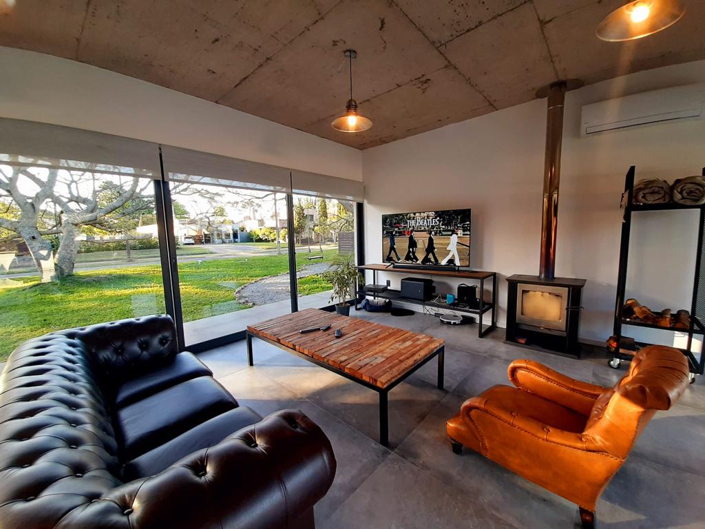 Con una construcción de 190 metros cuadrados en un terreno de 1000 mts2, la casa ofrece un interior espacioso que incluye un luminoso living comedor y una cocina integrada. La moderna estufa a leña añade calidez y es ideal para disfrutar en familia durante los días frescos.