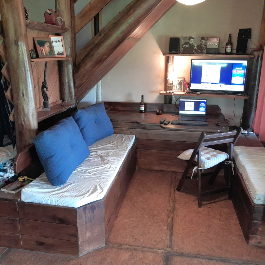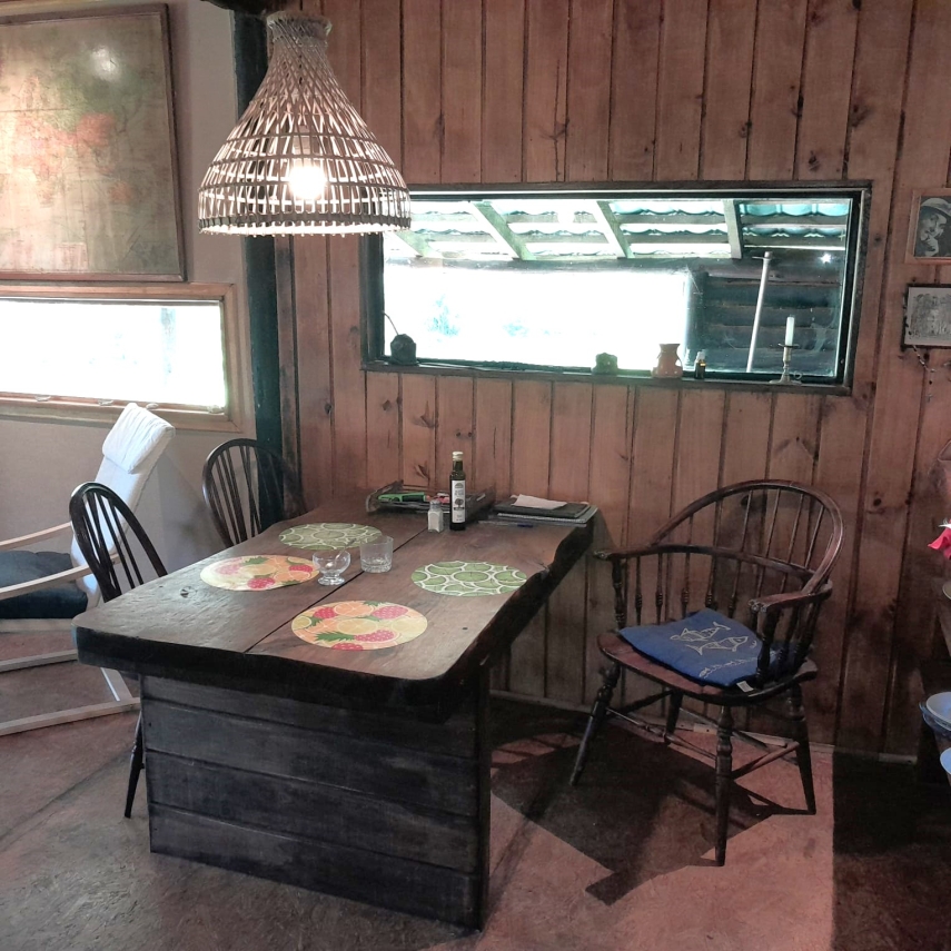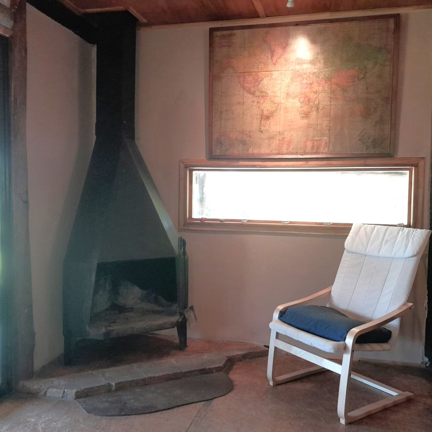 - Un cálido estar con estufa a leña, ideal para las noches frescas.