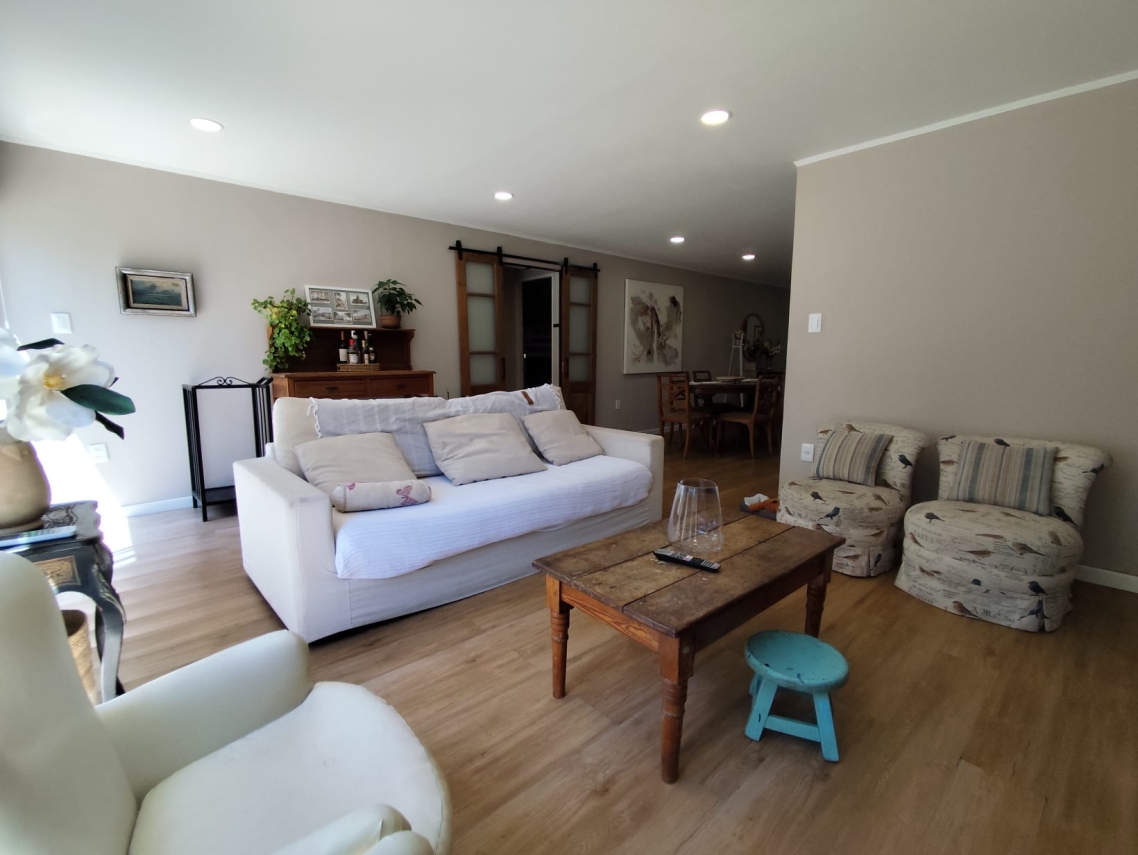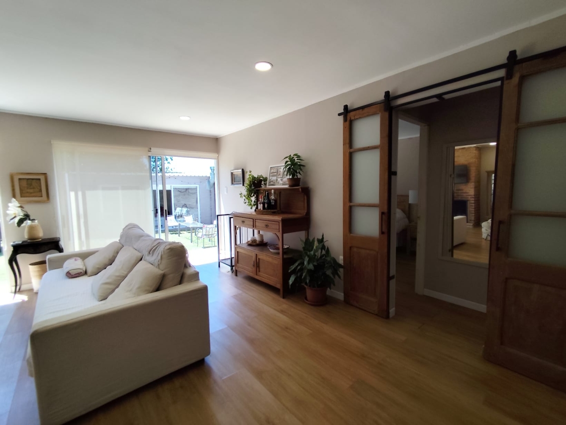 - Living amplio con estufa a leña, ideal para reuniones familiares o momentos de relax.