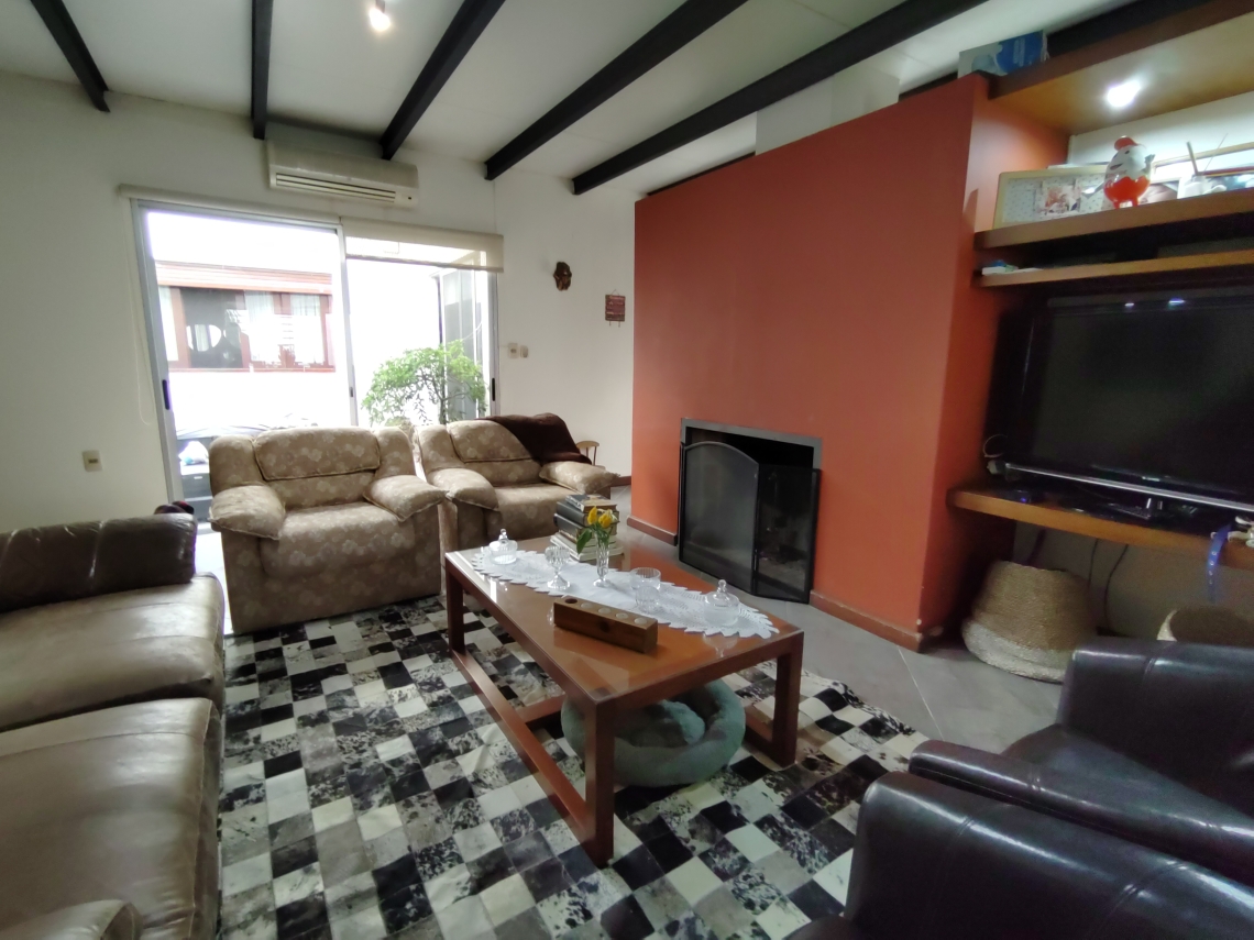 - Segundo living con estufa a leña, vista al jardín y al patio interno
