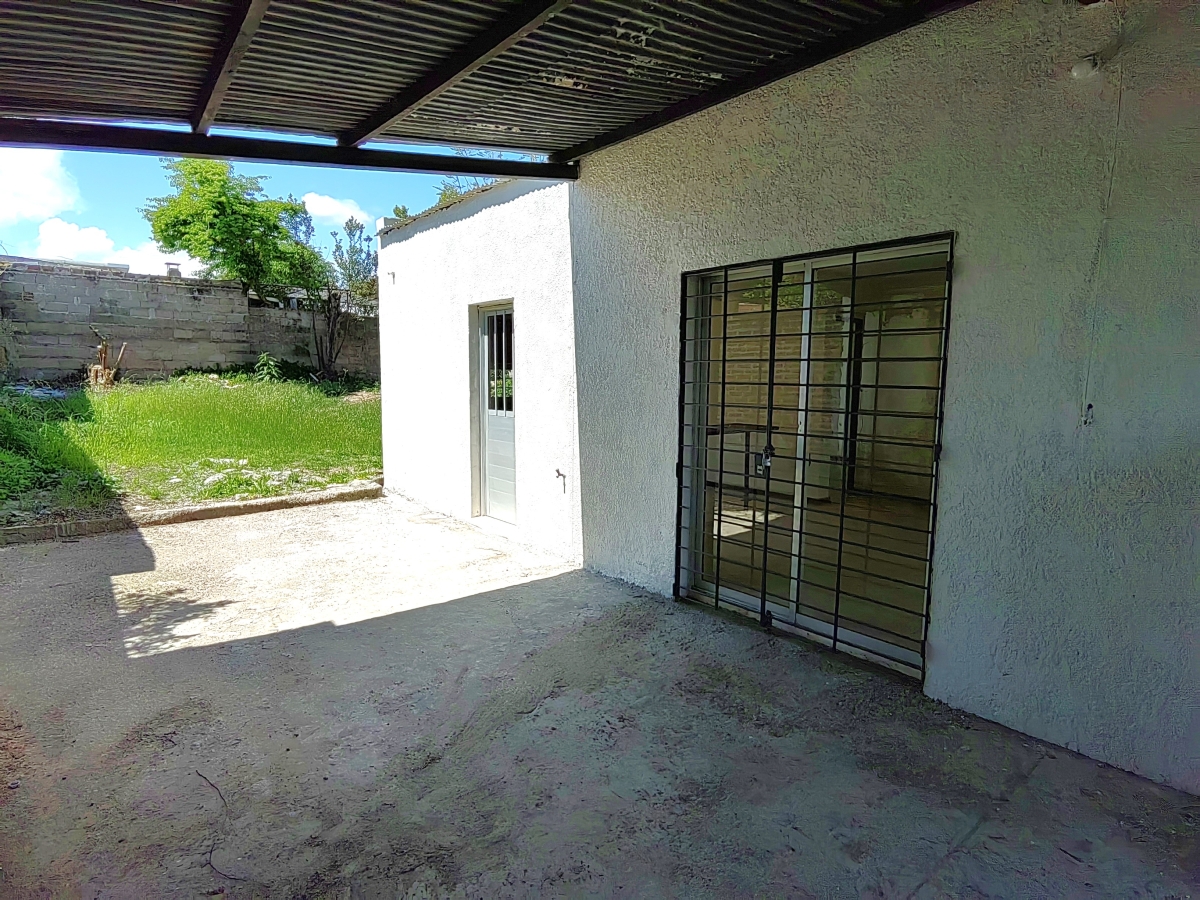 - Jardín al frente con rejas y muros perimetrales