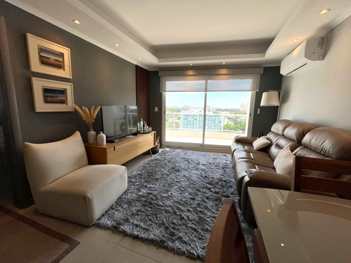 La cocina completa, junto con el living y el comedor, crean un ambiente abierto y acogedor, perfecto para reuniones familiares o cenas con amigos. El living comedor adicional ofrece un espacio extra para relajarse y disfrutar de la comodidad de tu hogar. El Apartamento se vende con muebles listo para disfrutar.