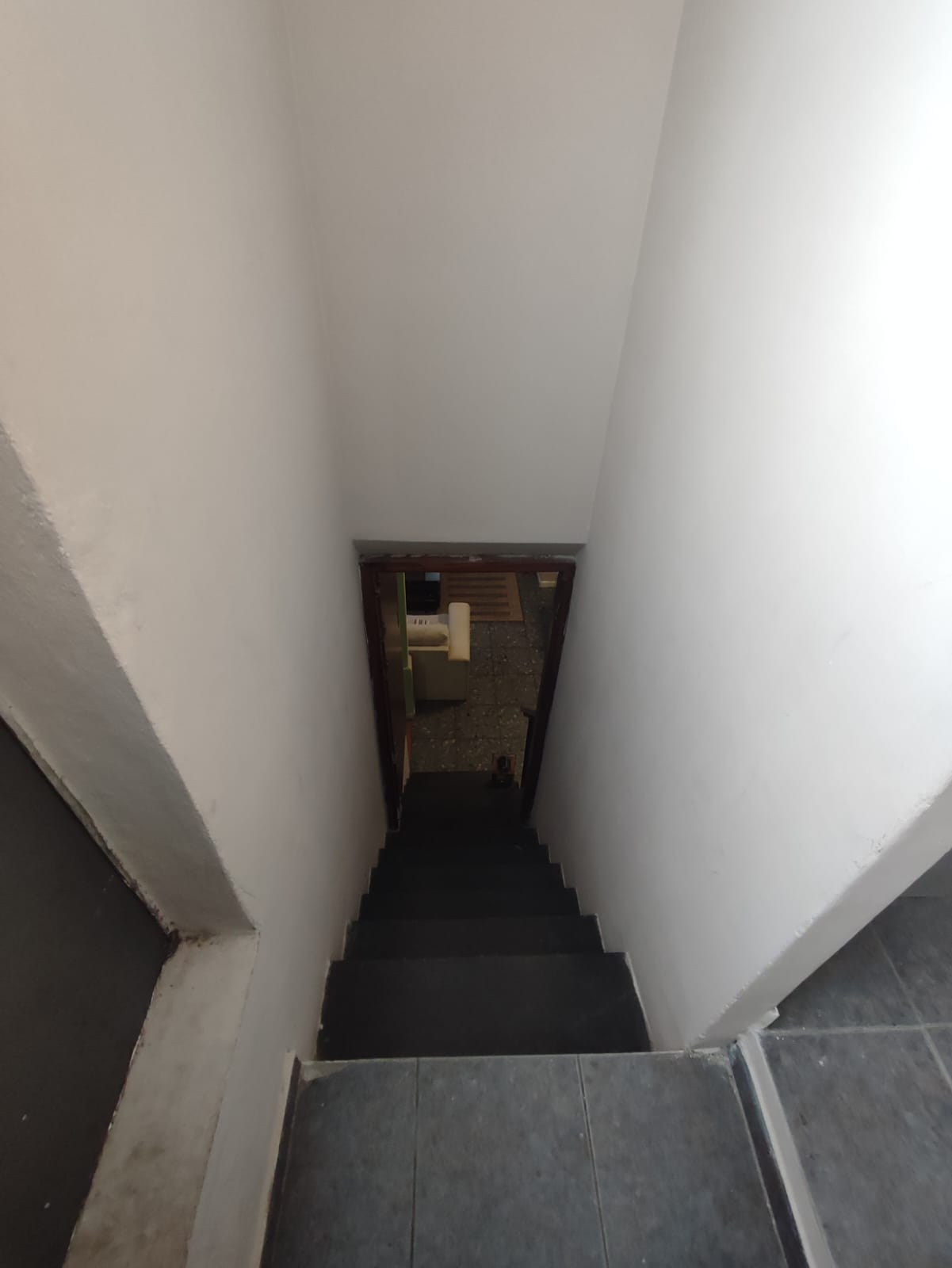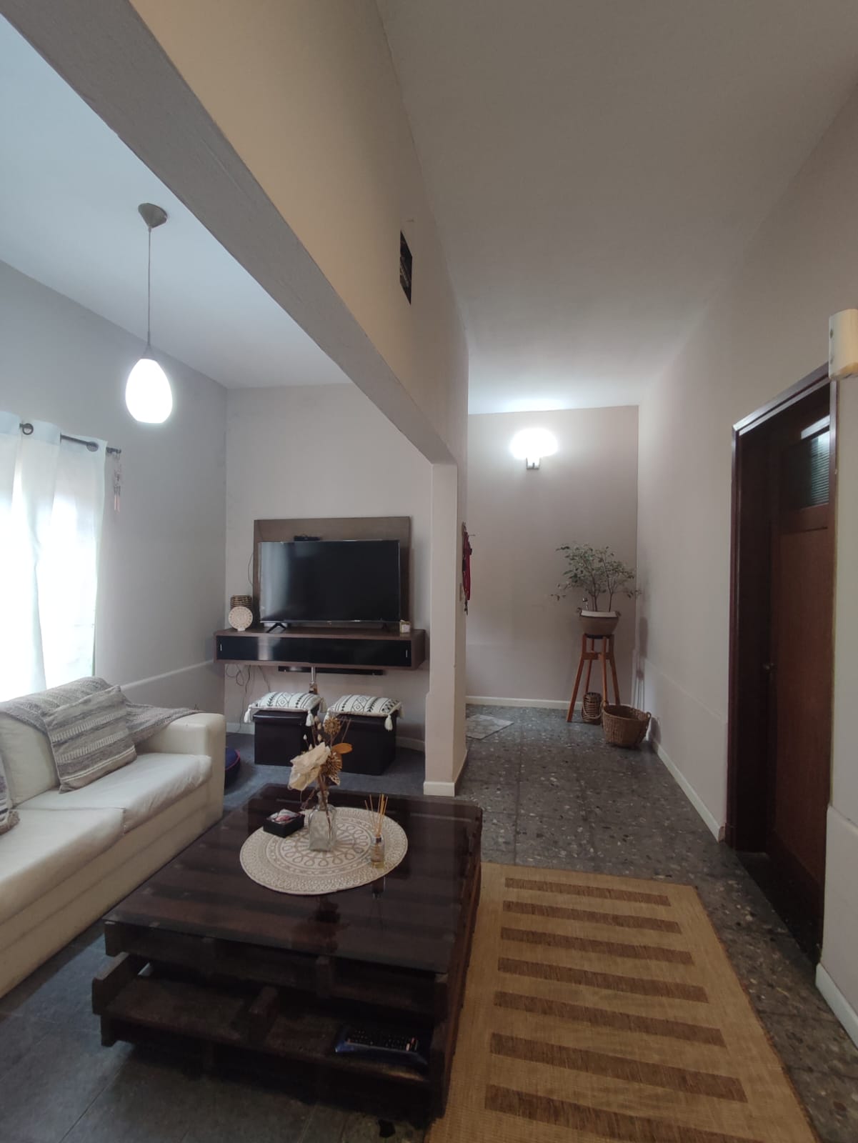 A través de un hall de distribución se ingresa al living con un sector de comedor con una cocina definida amplia. Lo dos domritorios de planta baja dan al living y con iluminación y ventilación natural a través de un patio interno de 2,40 x 2 mts. El dormitorio principal tiene generosas dimensiones 3,50 x 3,50 mts. El otro dormitorio en PB requiere refacción de la pared lindera que en un momento se mejoró impermeabilización pero no se hizo terminaciones.