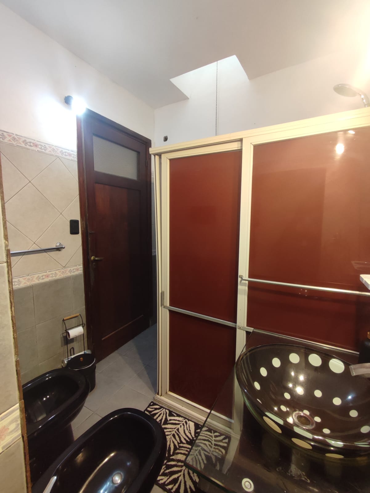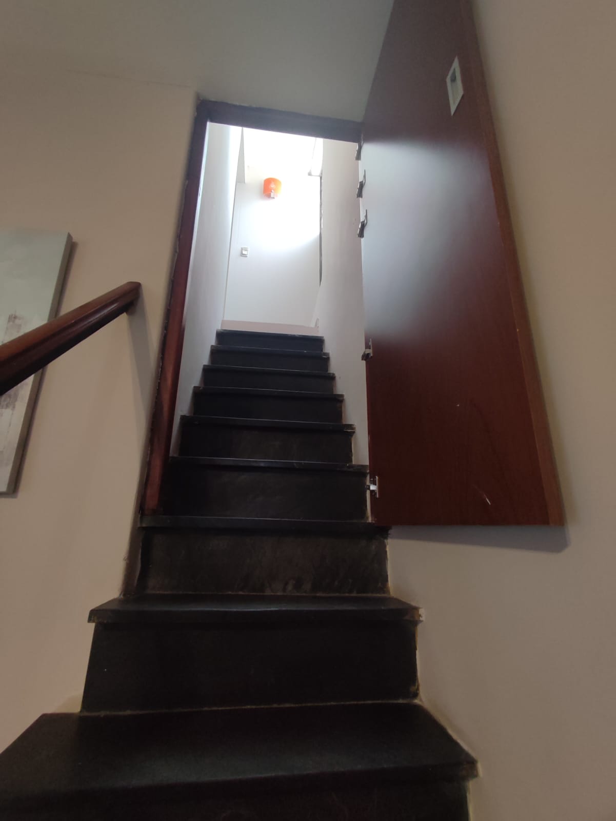 El baño es de época de 2 x 2 mts y posee un espacio bajo la escalera que podría aprovecharse para instalar lavarropas o depósito (1,50 x 0,7 mts). Luego una escalera angosta conduce al la planta superior en dónde hay un descanso (antedormitorio) que permite depósito o instalar un escritorio y luego un amplio dormitorio de 3,80 x 3,80.