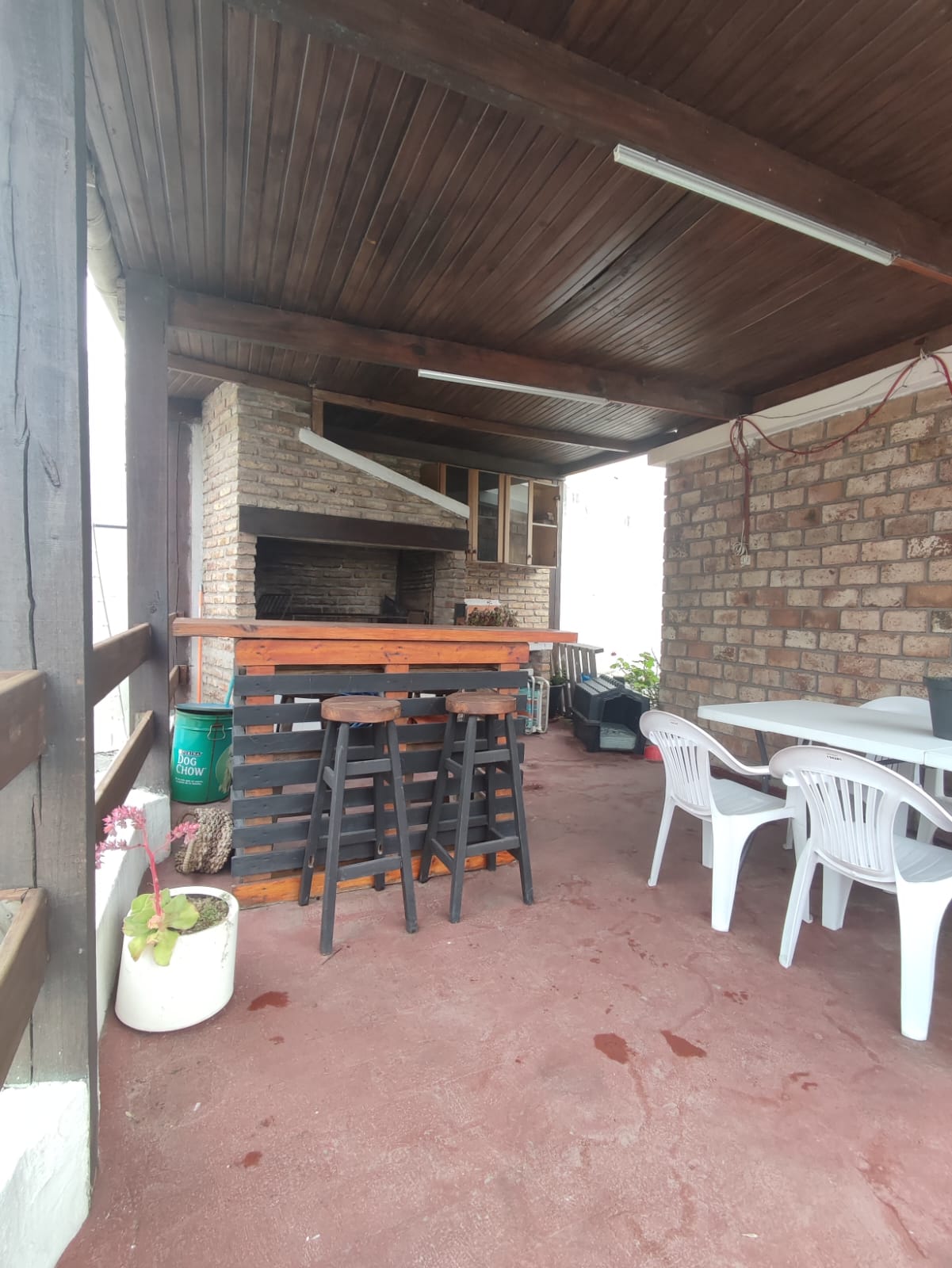 Es una casa de época de unos 70 años con algunos arreglos más recientes y un dormitorio que requiere arreglar una pared. El resto está en buen estado.