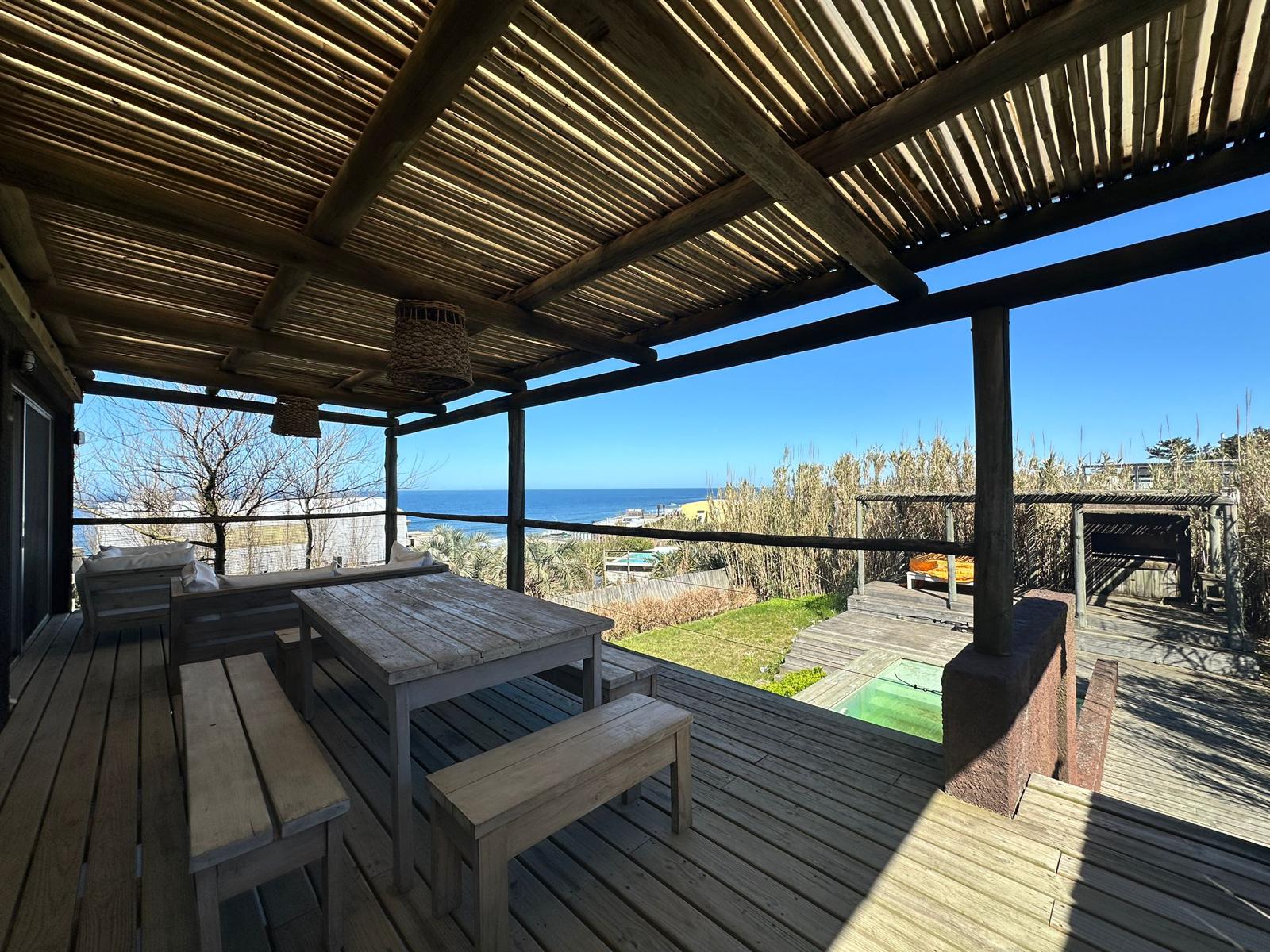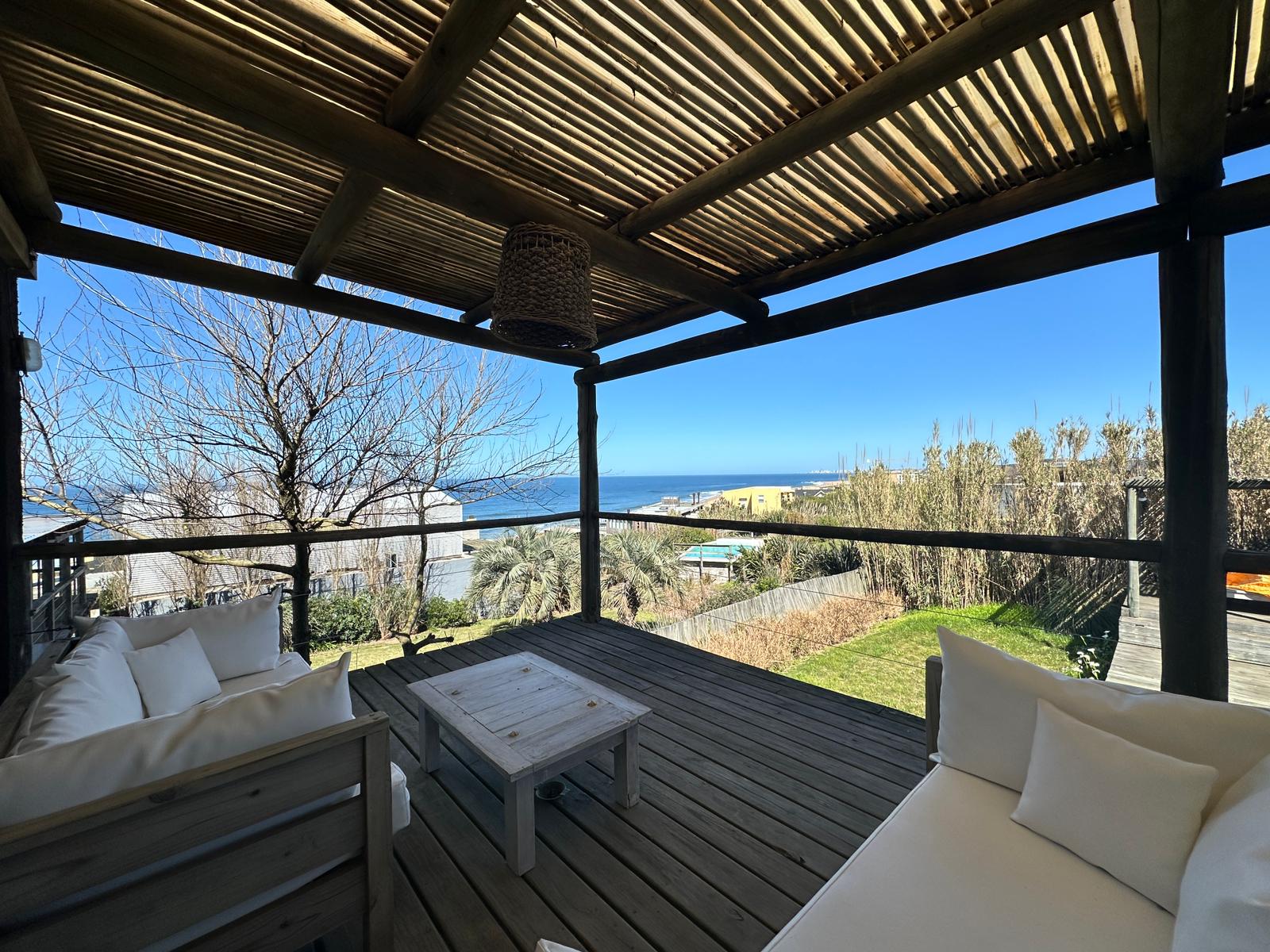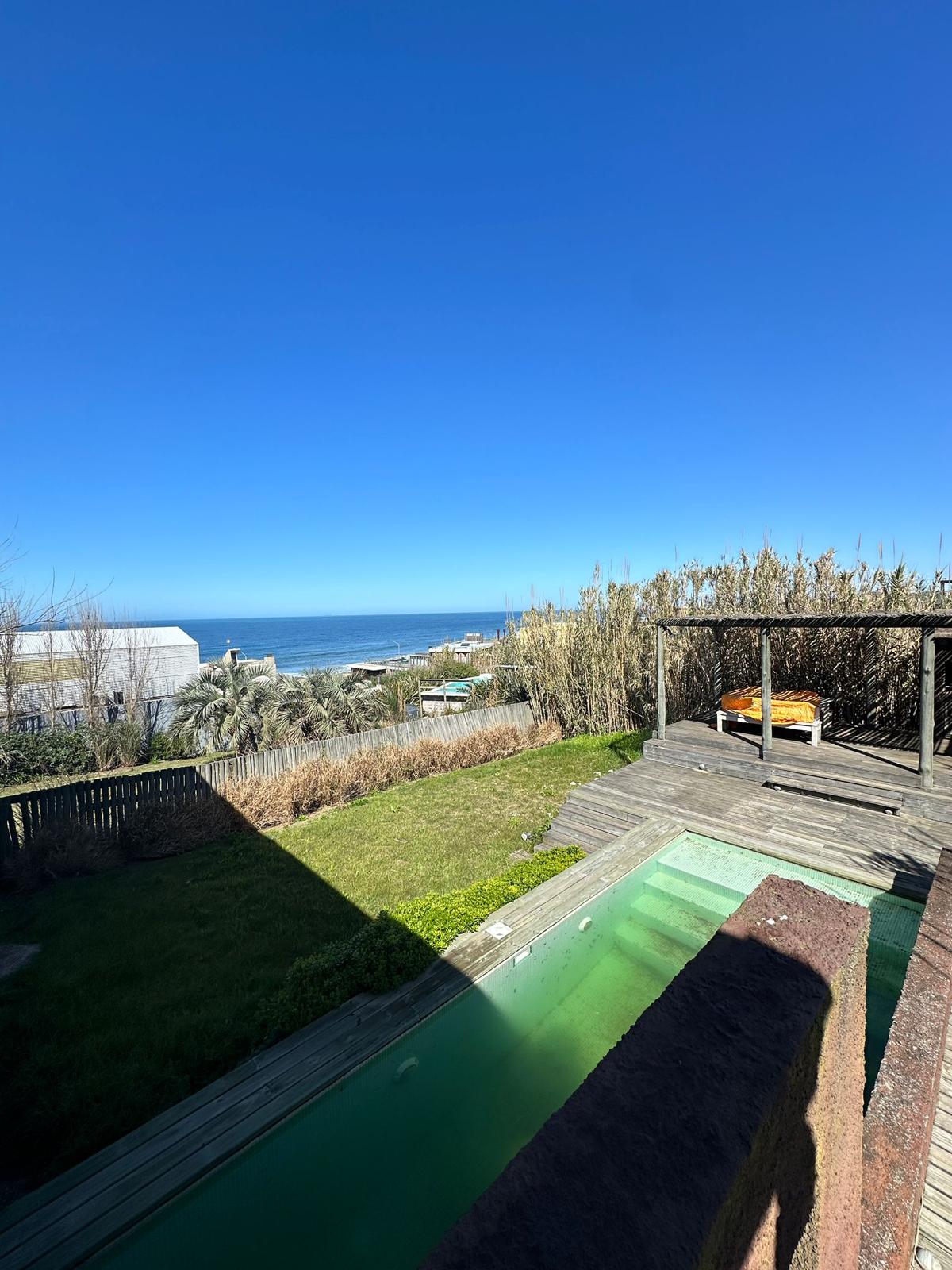 Casa de excelente calidad constructiva y moderno diseño ubicada a media cuadra del mar. En su planta principal cuenta con un master suite amplio con vestido y baño, un baño social, living comedor con estufa a leña y vista al mar, cocina amplia y definida y un deck de madera con pérgola y vista al mar. En la planta baja tiene 3 dormitorios más uno de ellos con baño en suite, otro baño completo, dependencia de servicio y lavadero. El fondo cuenta con una amplia piscina con vista al mar y un deck de madera pergolado con churrasquera. El frente tiene un diseño moderno y aterrazado y cuanta también con una amplia cochera.