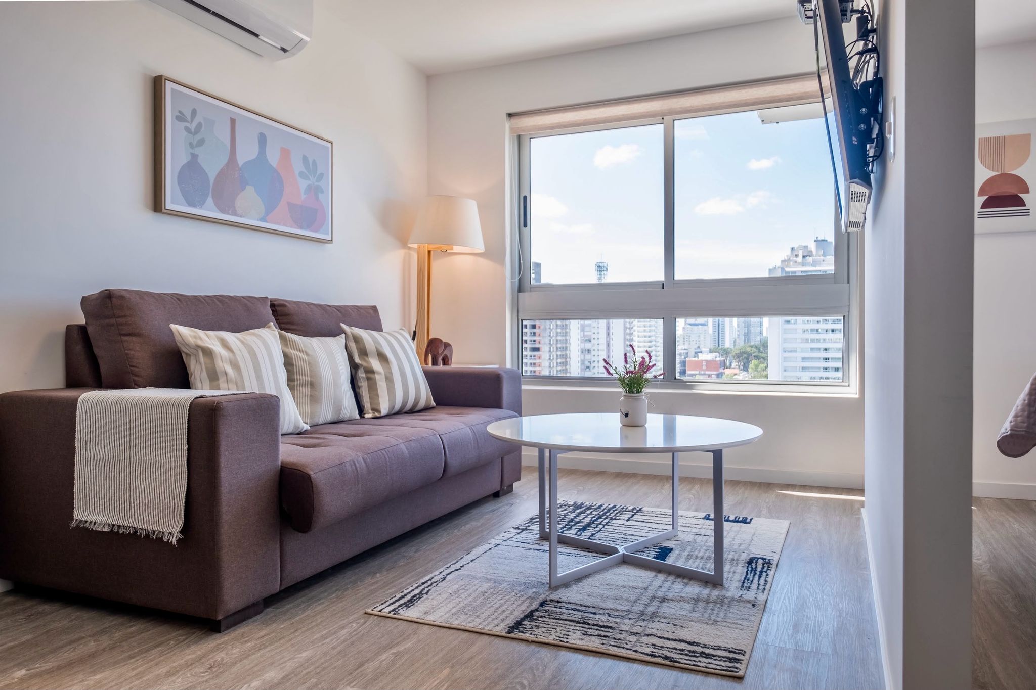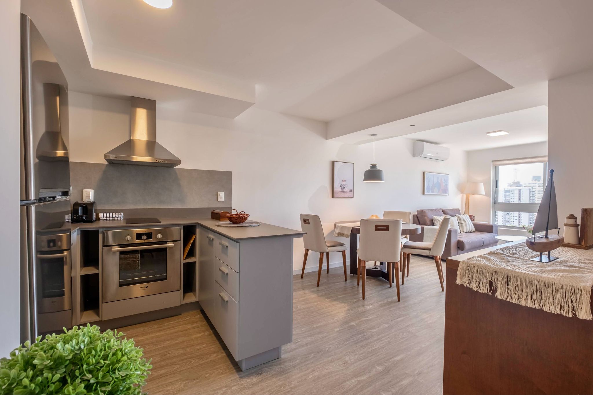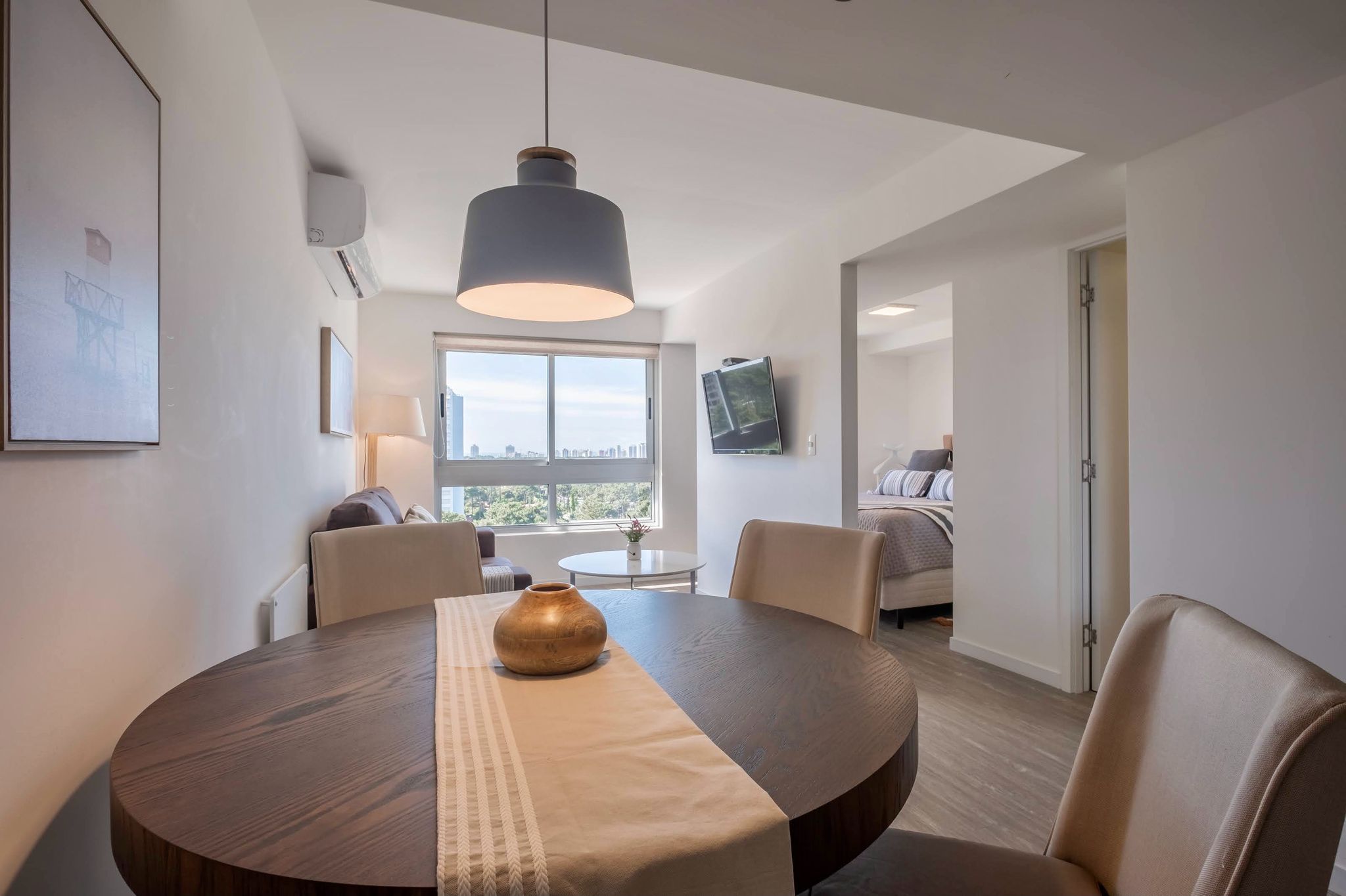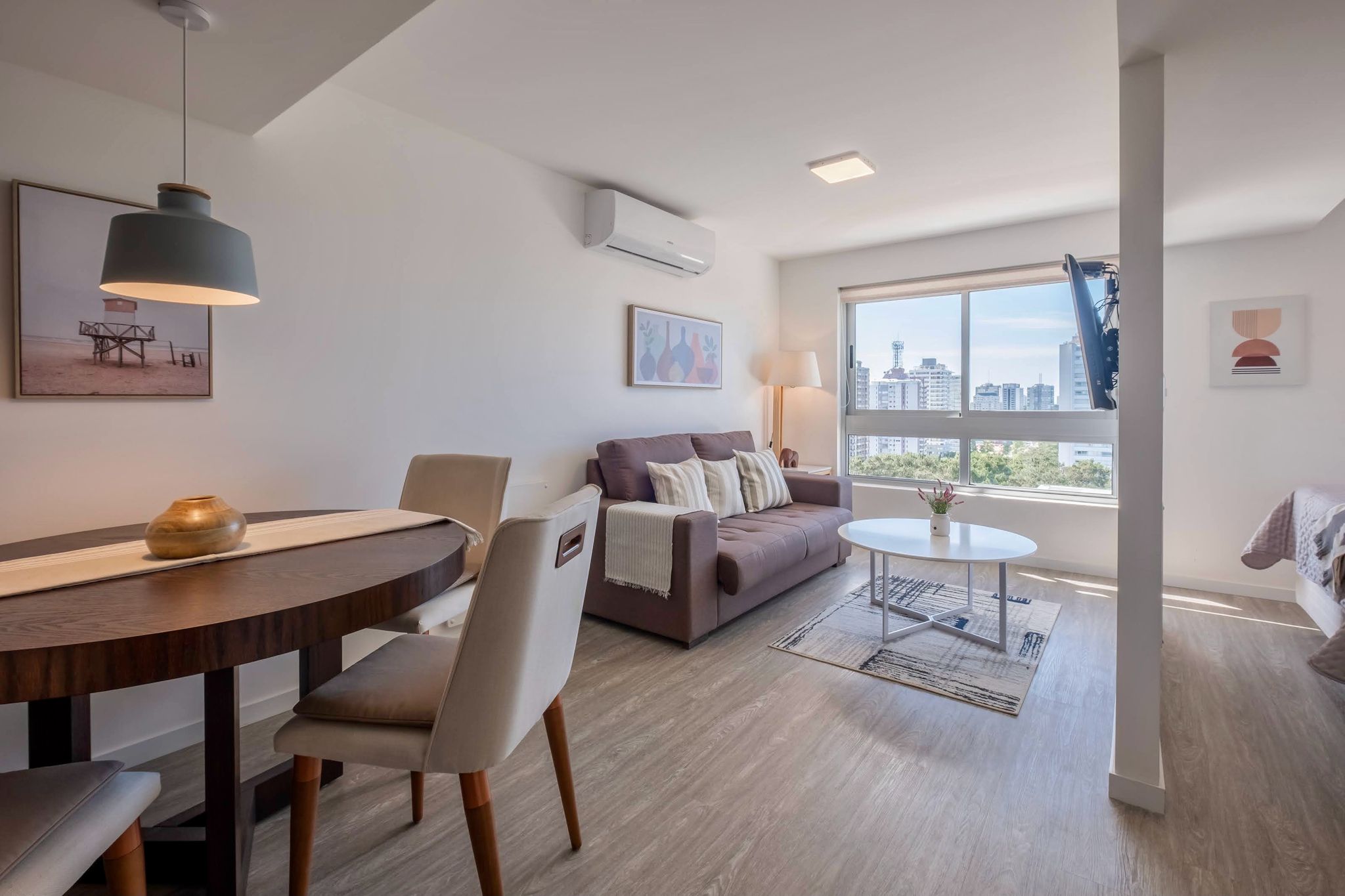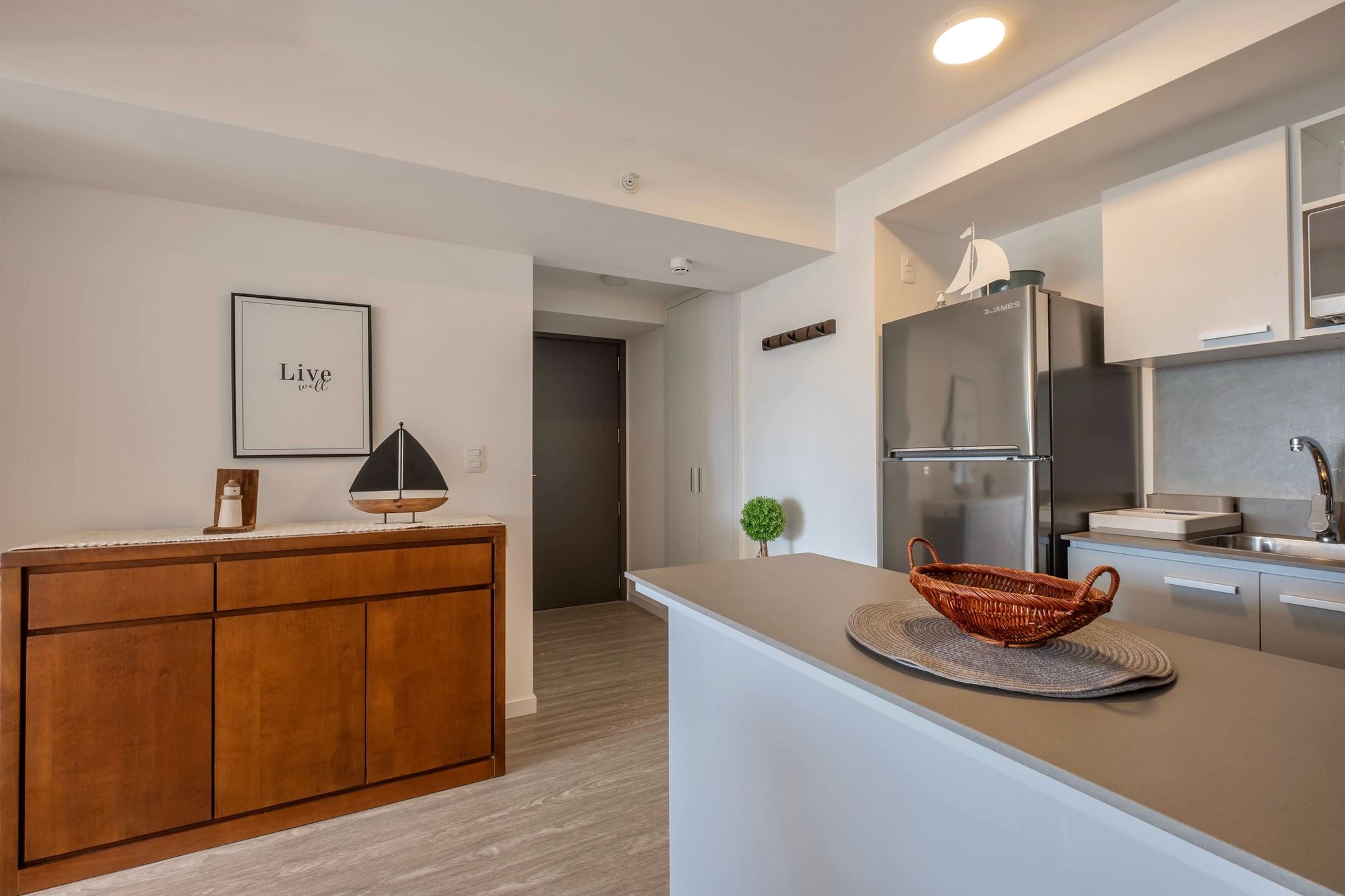 Presentamos un elegante apartamento de estudio, perfecto para aquellos que buscan un estilo de vida moderno y minimalista. Este espacio bien diseñado ofrece un ambiente de vida y comedor integrado, donde cada detalle ha sido cuidadosamente pensado para maximizar el espacio y la comodidad.