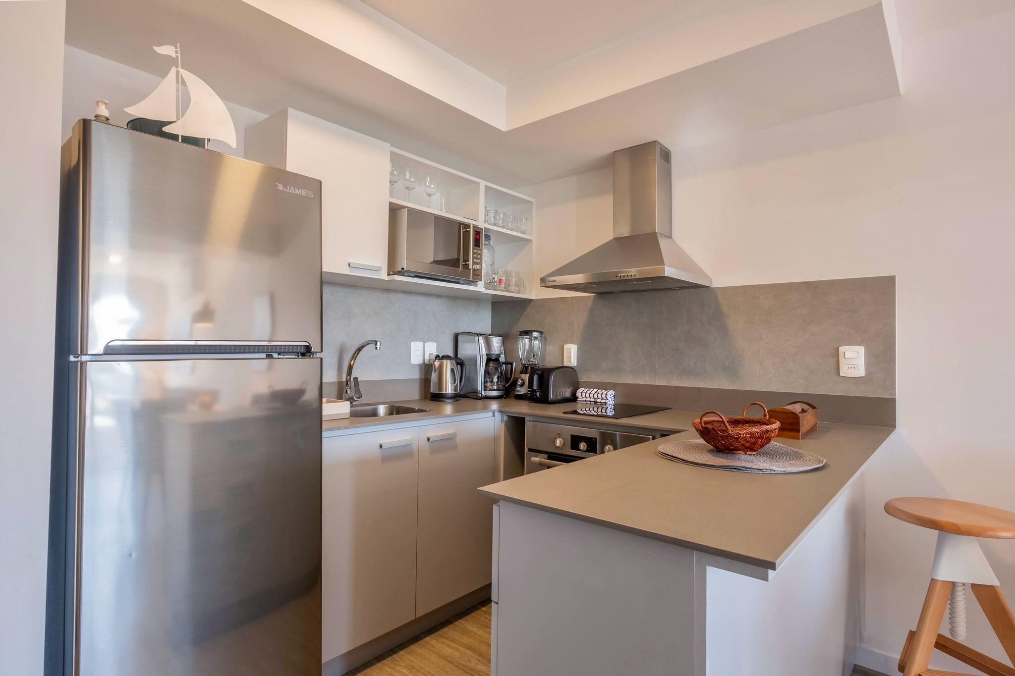 La cocina, aunque compacta, está equipada con todo lo necesario para preparar sus comidas favoritas. El baño, con sus acabados de alta calidad, es un oasis de relajación después de un largo día.